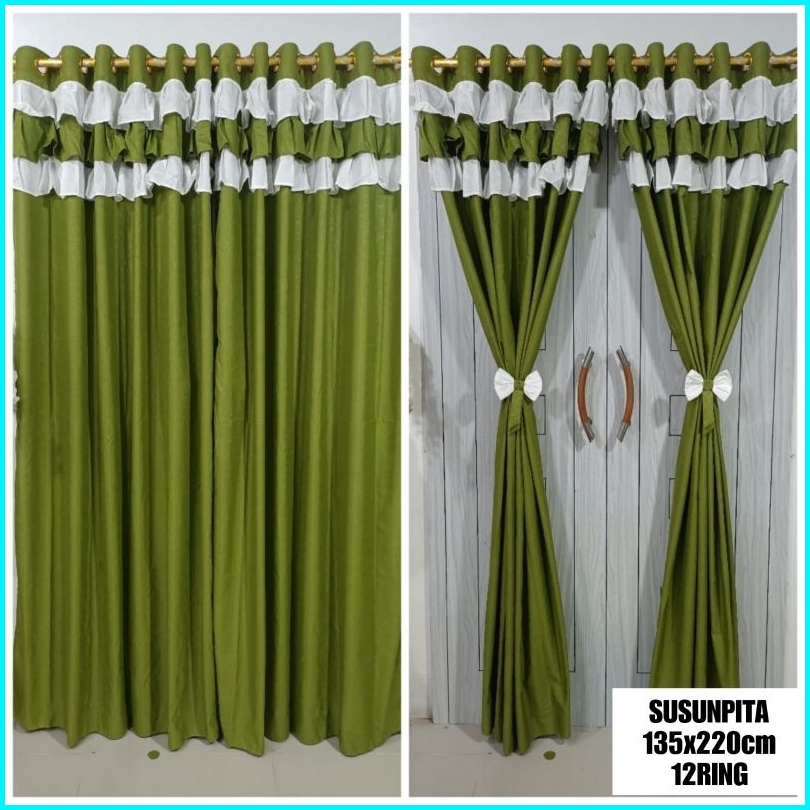Gorden Pintu Jendela Polos Embos Model Smokring Rumbai Poni Motif Murah Tirai Gordeng Hordeng