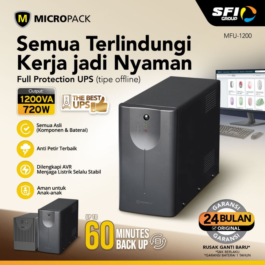Micropack UPS Offline Premium Stabilizer - Lightning Protection Anti Petir - 1200VA/720W - Battery 7Ah - MFU-1200