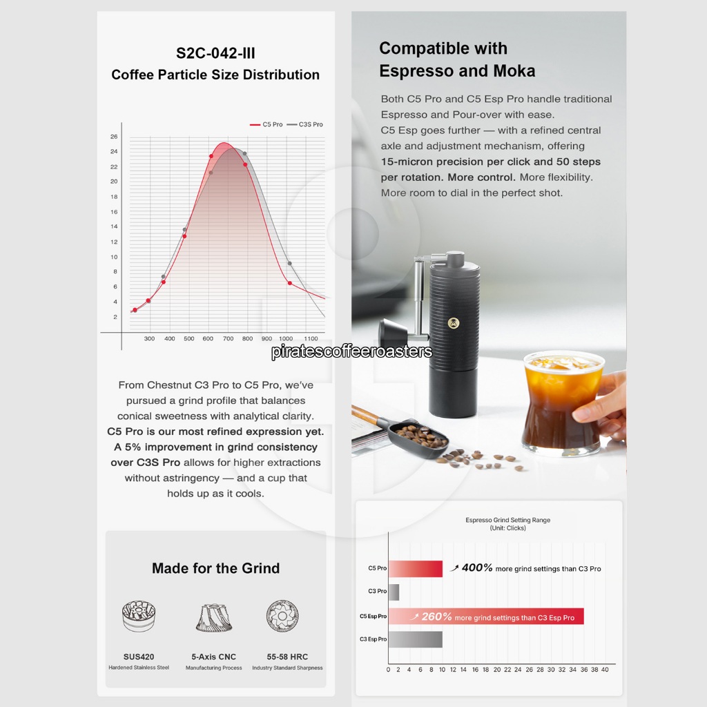 Timemore Chestnut C5 ESP Pro Manual Hand Coffee Bean Grinder | Alat Giling Biji Kopi