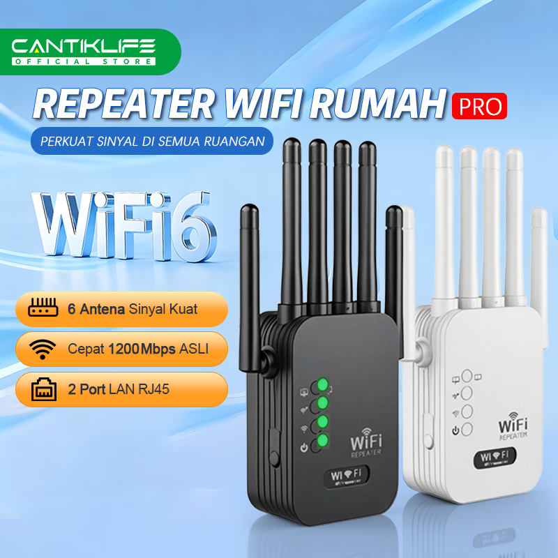 Repeater WiFi 1200Mbps Dual Band 2.4G + 5G | 6 Antena Sinyal Kuat WiFi Extender Penguat Sinyal Internet Rumah Kantor Rou