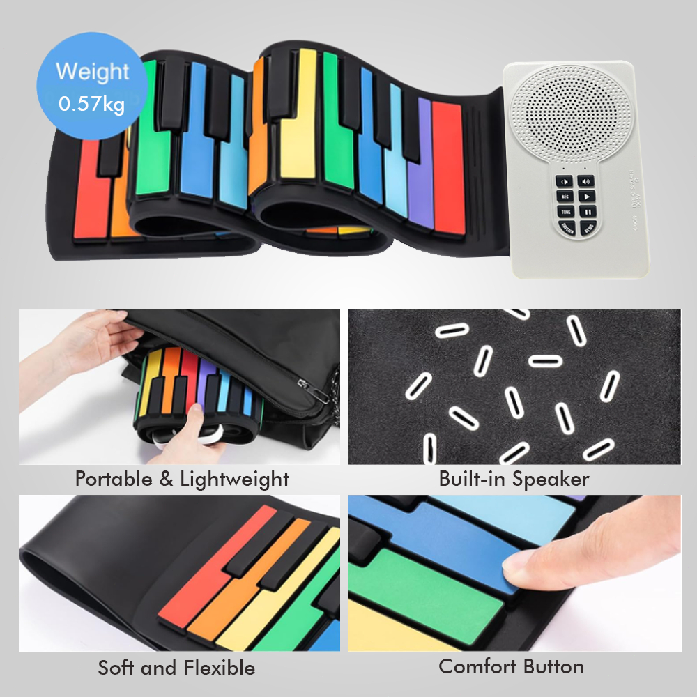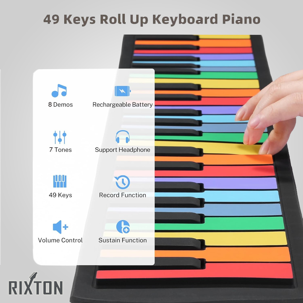 RIXTON 49 Tombol Roll Up Piano Keyboard Portabel Hand Roll Piano untuk Anak-anak/Pemula Isi Ulang