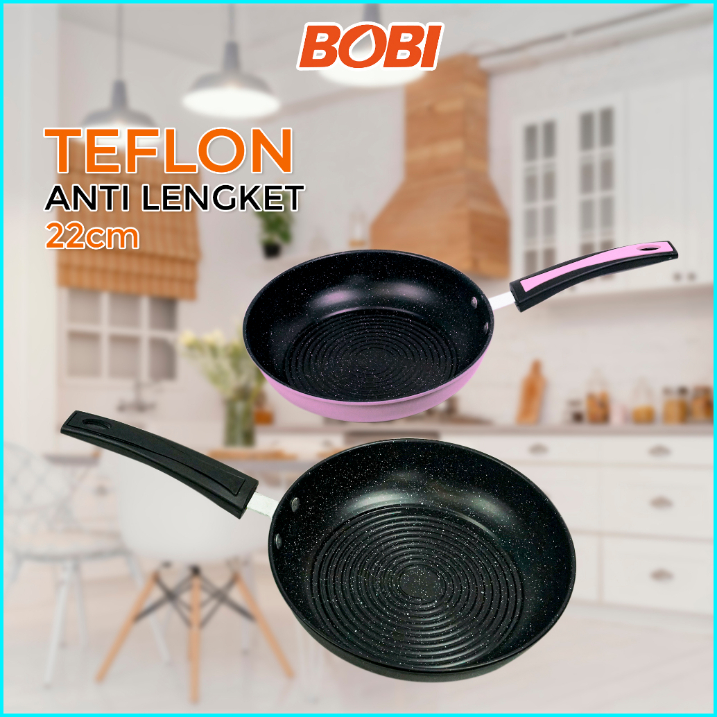 Teflon Panci Penggorengan 22 Cm Wajan Penggorengan Anti Lengket Wok Pan Teflon Praktis Bobi - Warna Random