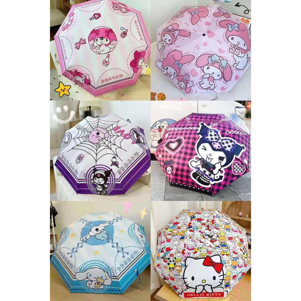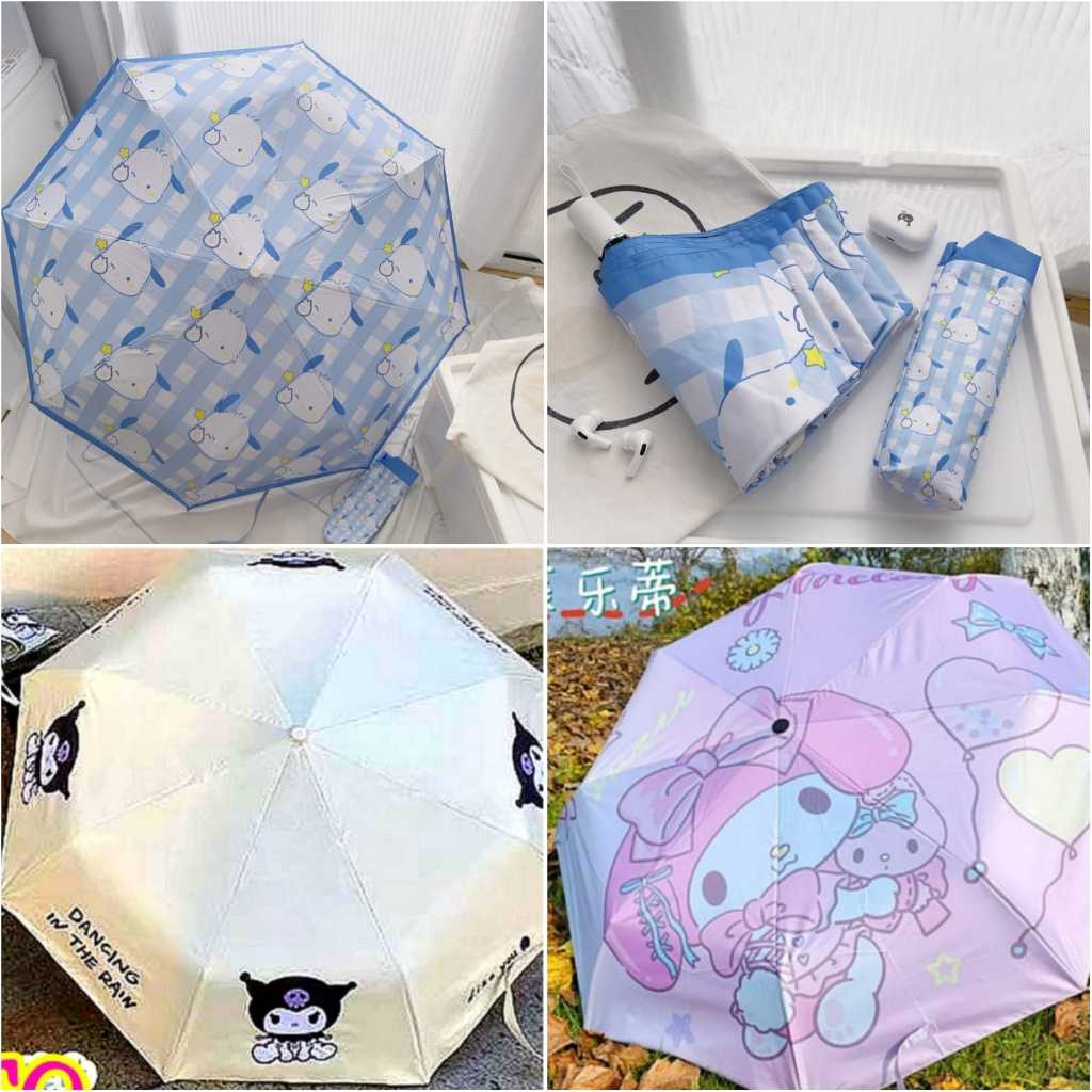 Payung Lipat Warna Otomatis Cinnamoroll Kuromi Hello Kitty Melody