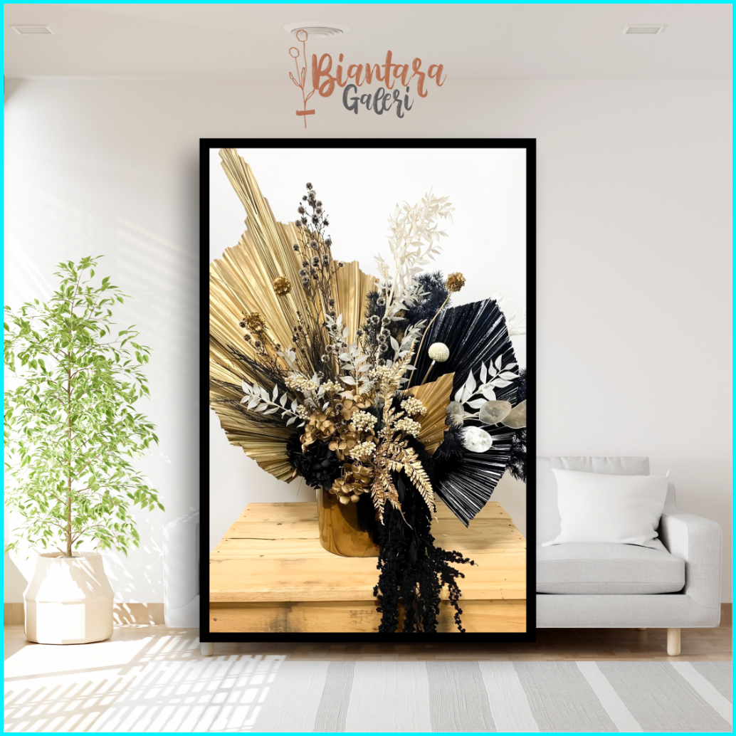 Biantara Superjumbo Bbk 40x60 Cm Walldecor Hiasan Dinding Kamar Lukisan Bunga Kering Hitam Bingkai Mdf 6mm Pajangan Deko