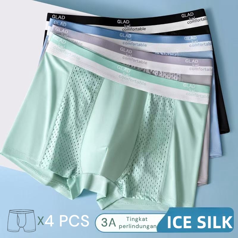 Celana Dalam Pria 4 PCS Underwear Boxer Ice Silk Edenwear Adams Series|Celana Boxer Pria