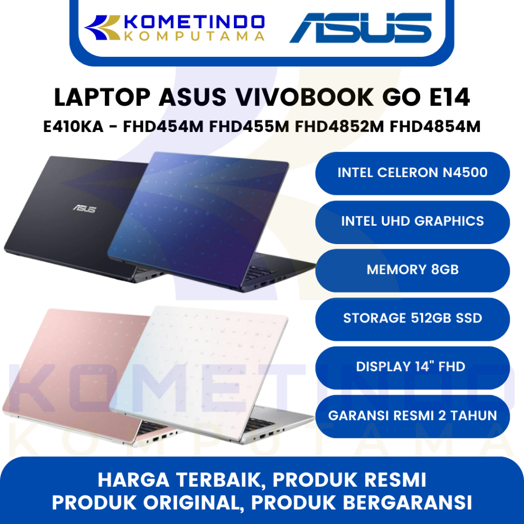 Laptop ASUS Vivobook Go 14 E410KA Intel Celeron N4500 Intel UHD Graphics 8GB 512GB 14inch WIN11 OHS21 - FHD454M FHD455M FHD4851M FHD4852M FHD4854M