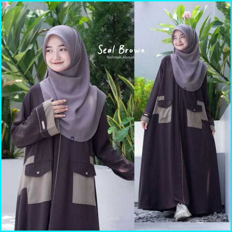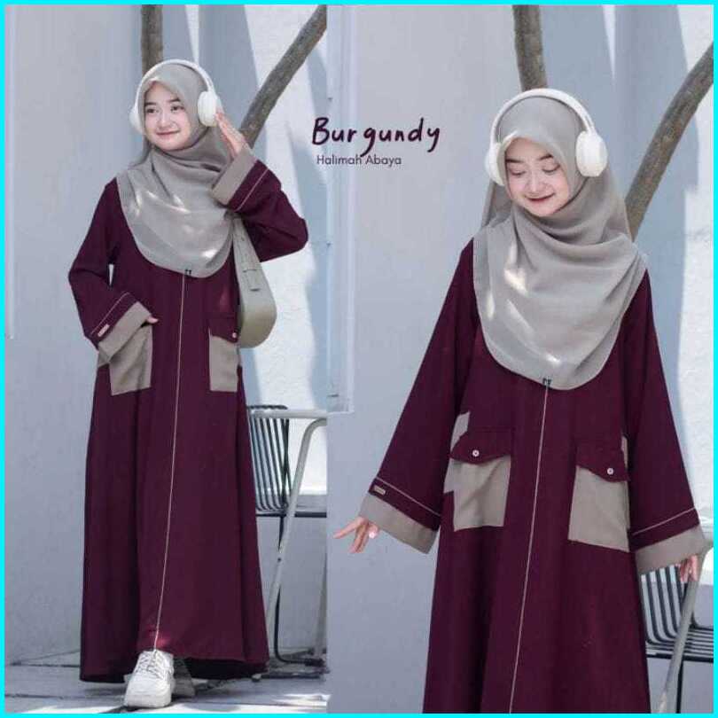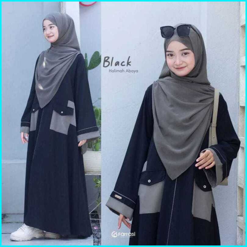 Gamis Halimah Abaya Hitam Black Remaja 12 13 14 15 16 17 Tahun Bahan Crinkle Airflow Kombinasi Saku Abaya Remaja Aesthet
