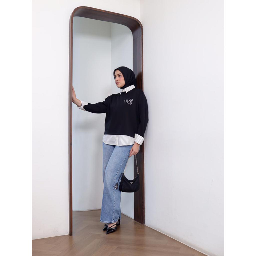 Kheva Mauza Zemira Top | Atasan Casual Blouse Kerah Kombinasi Wanita