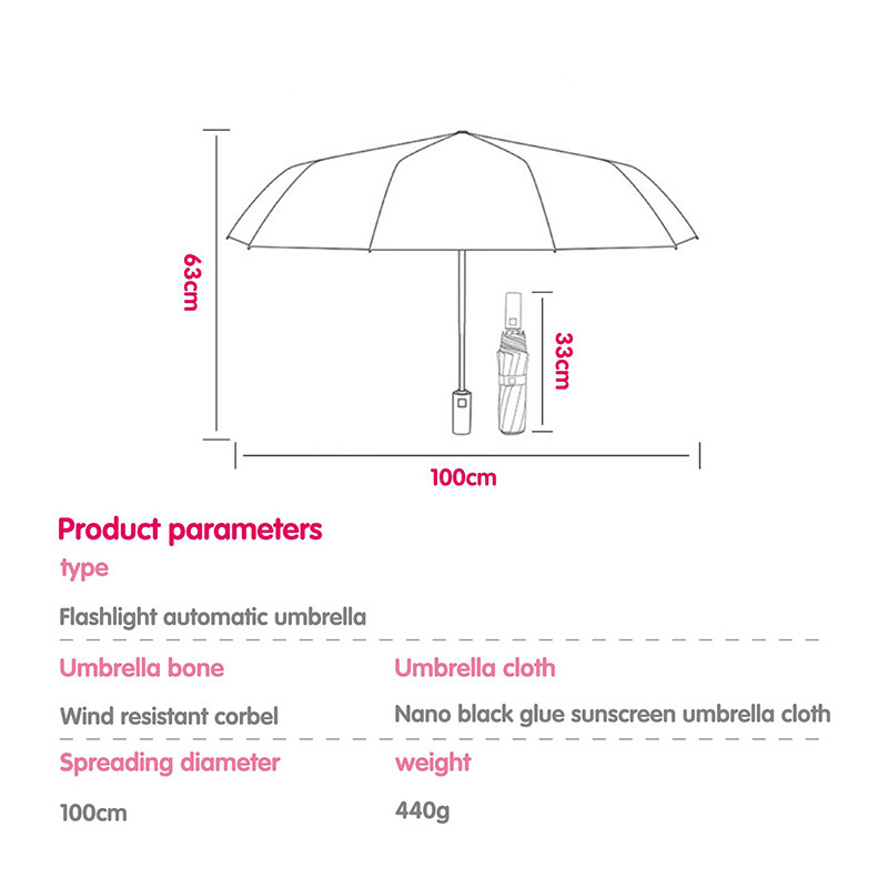 Prana Payung Led Payung Lipat Bahan Vinly Pelindung Dari Sinar Uv Matahari Dan Hujan Hl-Agf571