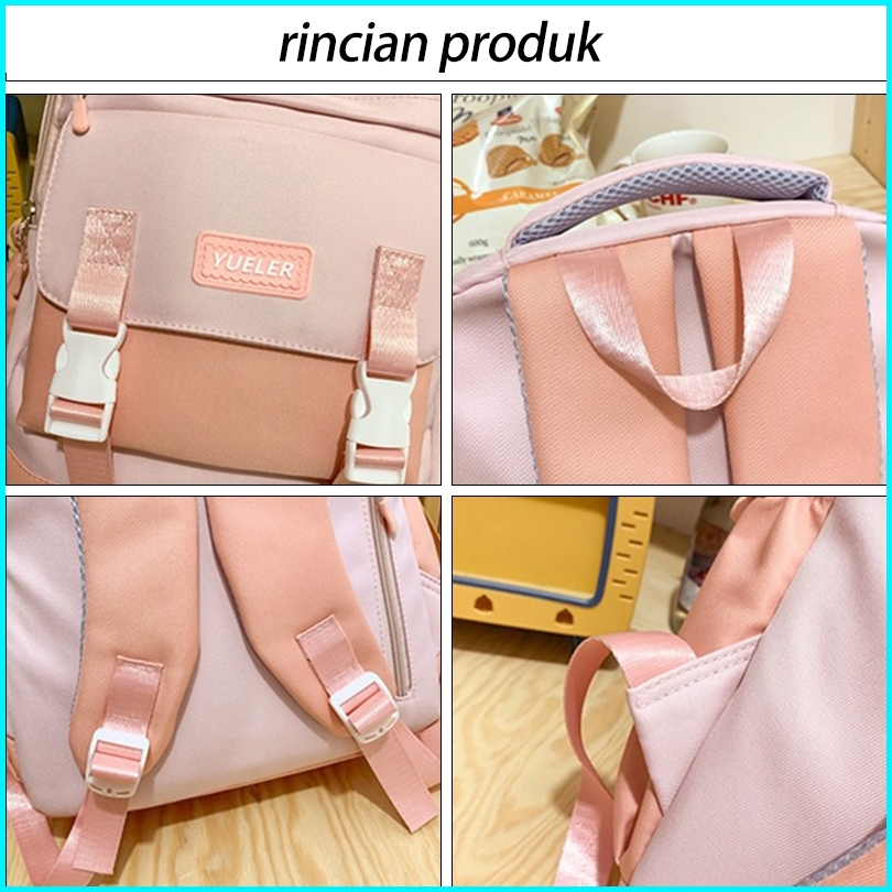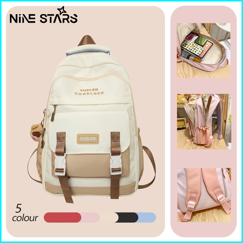 Nine Stars Ransel Wanita Korea Kapasitas Besar Tas Sekolah Perempuan Tahan Air Tas Kuliah Sekolah