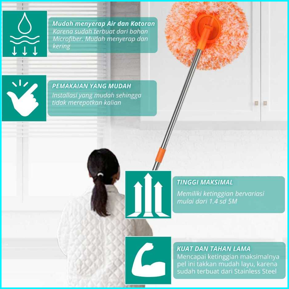 1 Set Alat Sapu Plafon Dapat Membersihkan Rak Sepatu Pel Dinding Dan Plafon Multi Fungsi Pel 1.4m-5m