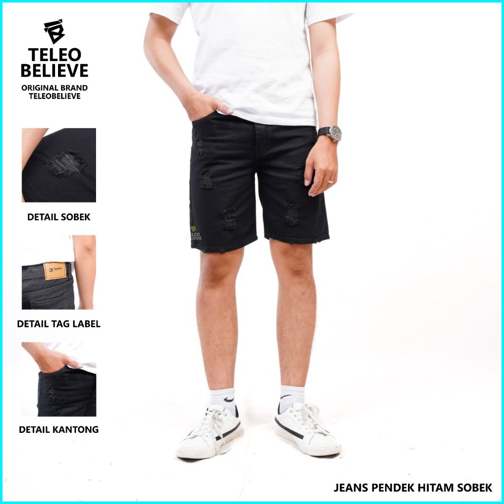 Celana Jeans Pendek Sobek Pria Wisker Jeans Pendek Ripped Robek Pria Premium Distro New