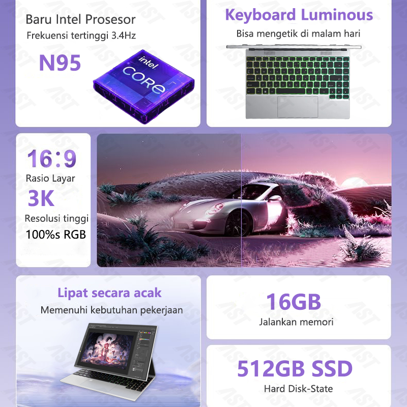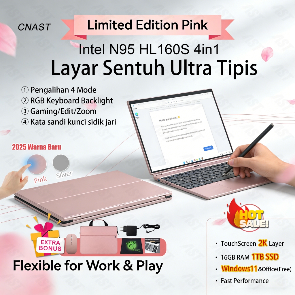 T0P 1 SALE - CNAST Laptop 2in1 touchscreen 14 inch Baru lipat 360° Intel N95 16GB RAM 512GB SSD Garansi