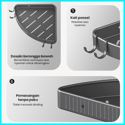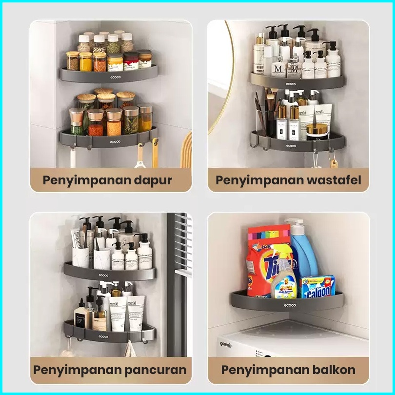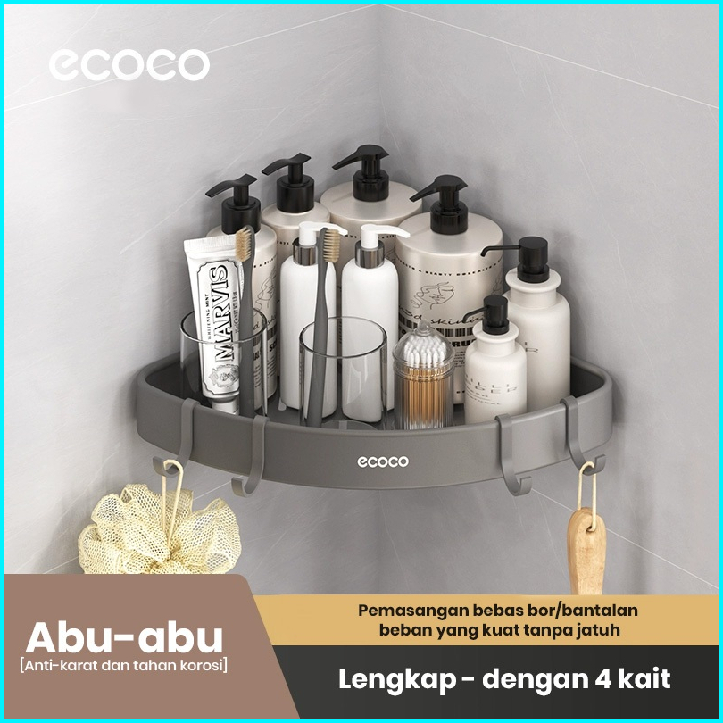 Ecoco Corner Shelf Alumunium - Rak Segitiga Kamar Mandi Untuk Shower Gel Rak Sampo Toilet Bebas Pelubang Rak Segitiga Su