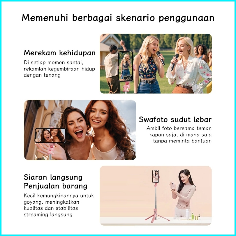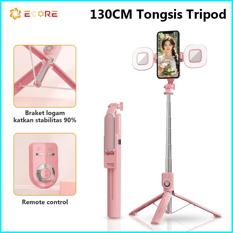 Ecore Tongsis Selfie Stick Tripod Bluetooth 130cm Paduan Aluminium Selfie Stick Remote Bluetooth 7 Tombol Monopod Portab