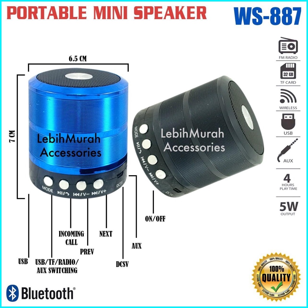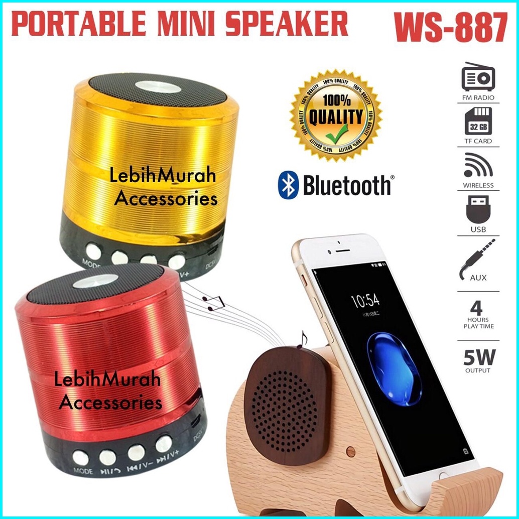 Speaker Bluetooth Music Box Motif Chorme Type Ws887 Speaker Wireless Stereo Ws 887 Speaker Mini Speaker Aktif