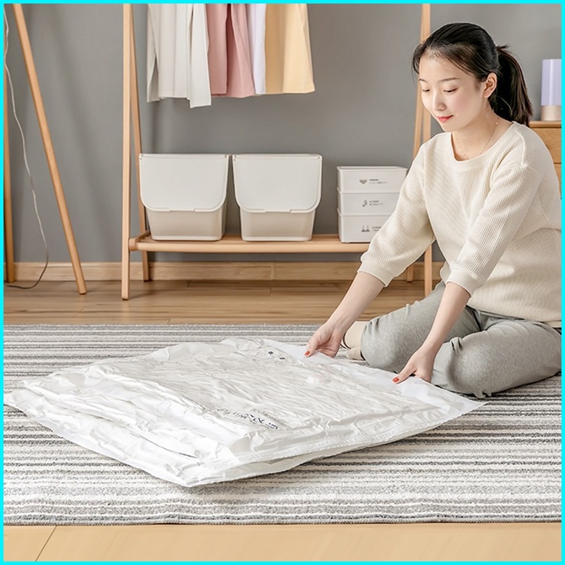 U-living Set 4pcs Plastik Vacuum Dan Pompa Elektrik Vacuum Kantong Pakaian Travel Anti-air Dipakai Berulang Pvs003