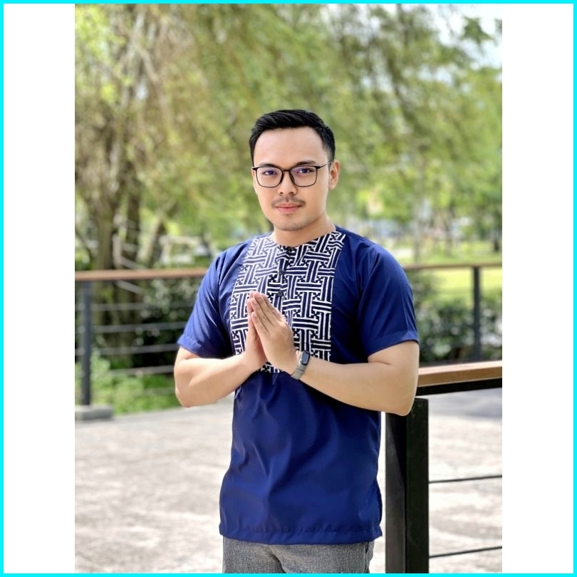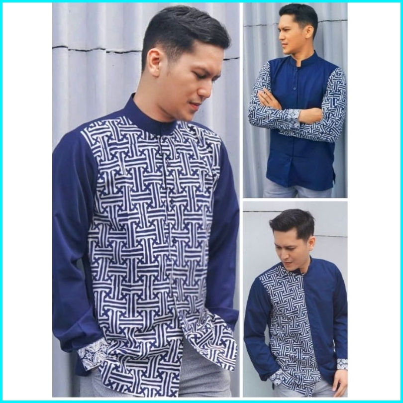 Hindi Navy Koko Kemeja Pria Koko Muslim Batik