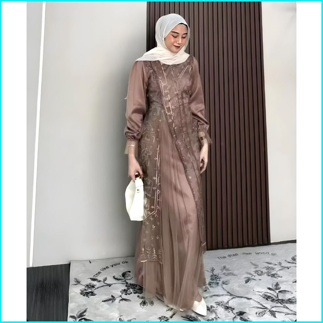 Maxi Kinar Dress Gamis Pesta Kondangan Seragam Bridesmaid Wanita Bahan Brukat Silk Tille Garden