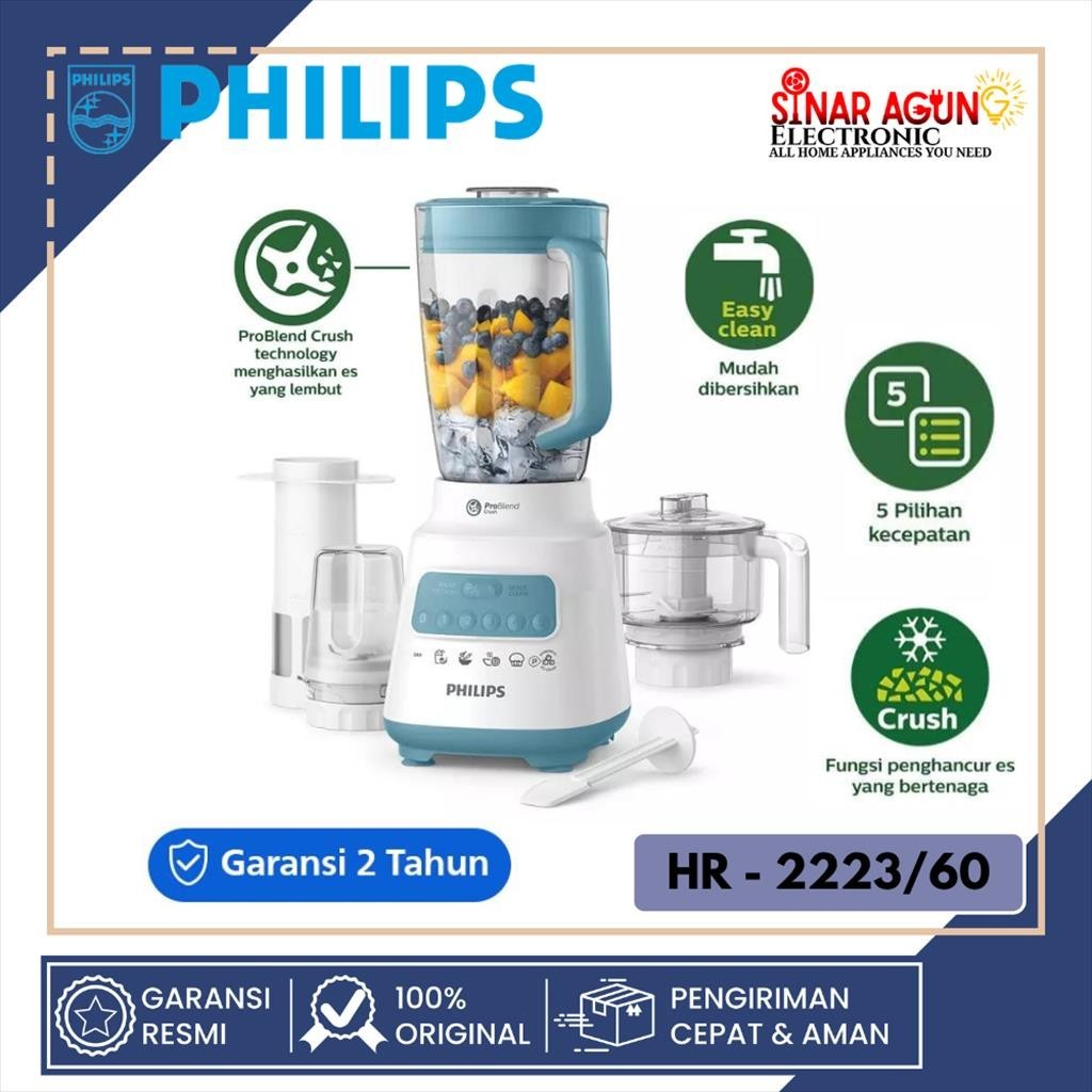 PHILIPS HR2223 / HR-2223 BLUE BLENDER PLASTIK 2 LITER - GARANSI RESMI