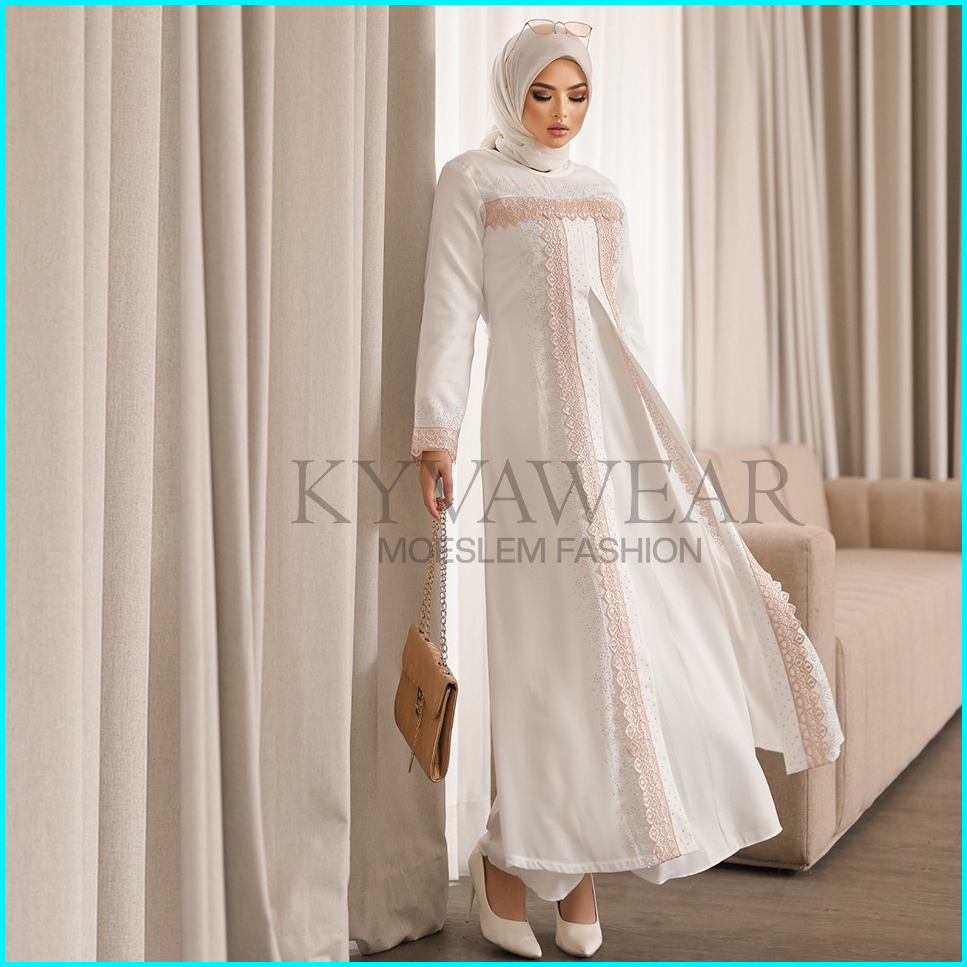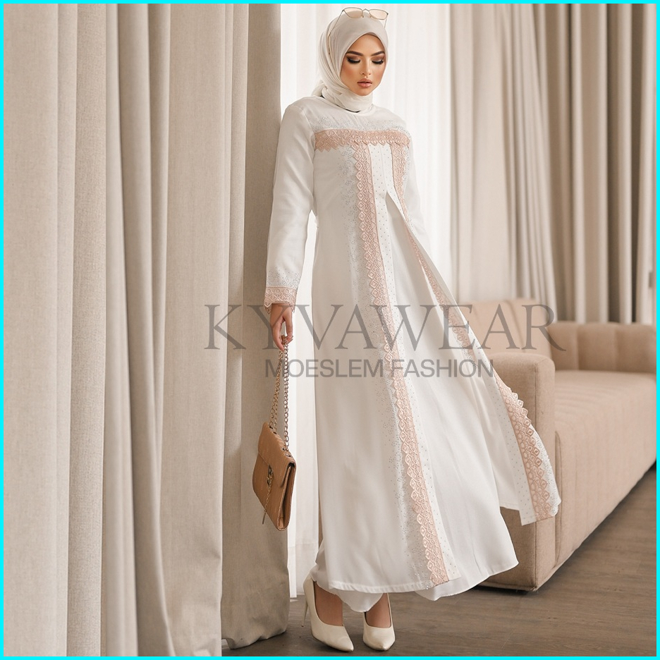Kyva Gamis Muslim Abaya Putih Turkey Terbaru Renda Brokat Lm 012 Pesta Remaja Mewah