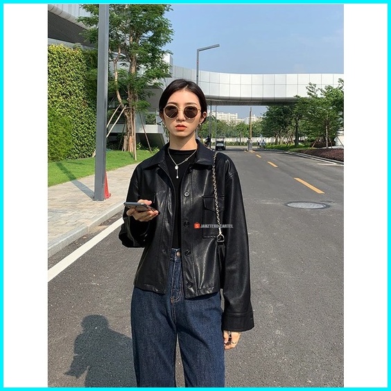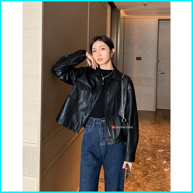 Jnk X Binbin - Jaket Kulit Wanita Coklat Hitam Faux Synthetic Leather Jacket Original Premium Import Elegan Kasual Brand