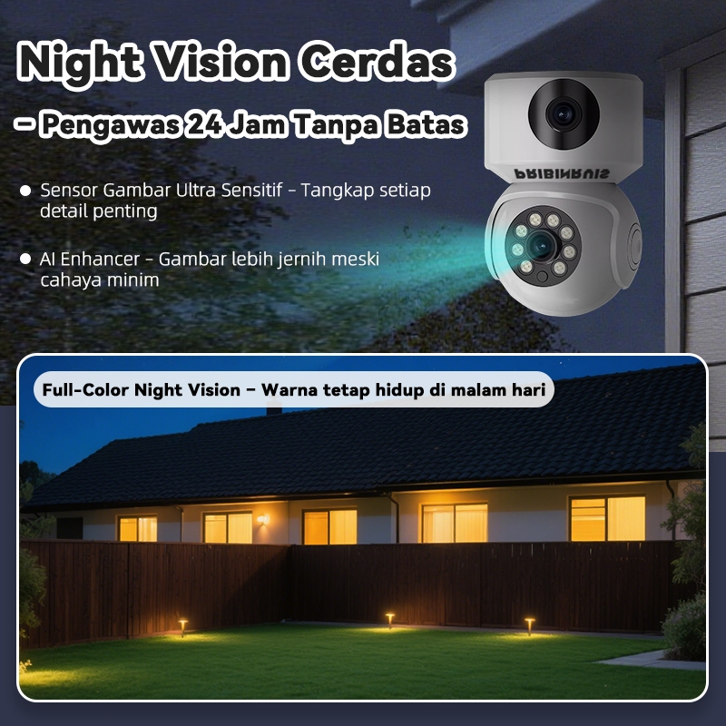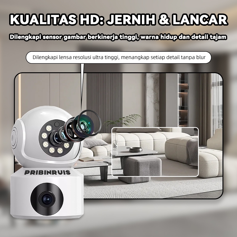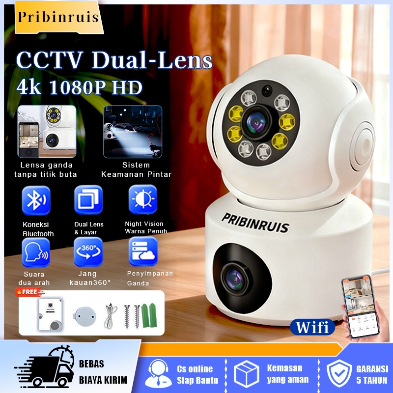 PRIBINRUIS CCTV 1080P Dual Lens Full HD 360 Rotation Auto Tracking Two-Way Voice Smart Wifi Kamera