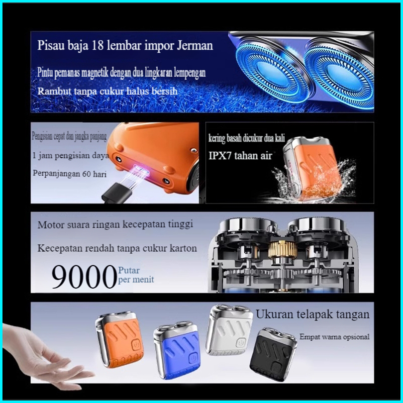 Mini Electric Shaver 2 Floating Head Digital Display Portable Shaver Machine Magnetic Cutter Alat Cukur Jenggot Elektrik