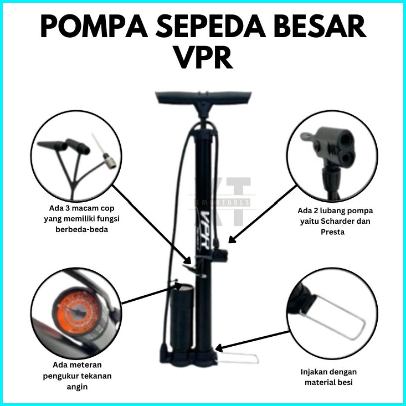 Pompa Angin Sepeda Tabung Meter Pompa Bola Ban Besar Vpr