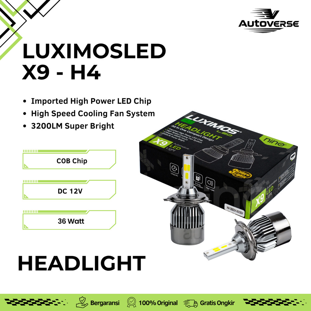 Lampu Utama Mobil H4 LED 72W Foglamp Headlamp 3 Warna PNP Tembus Hujan Kabut X9 LUXIMOS Super Terang
