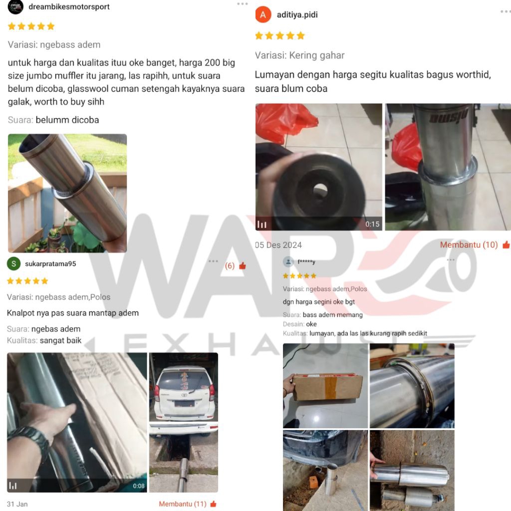 Knalpot mobil racing big size/jumbo untuk mobil bensin 1500cc keatas tipe suara full gahar dan bass