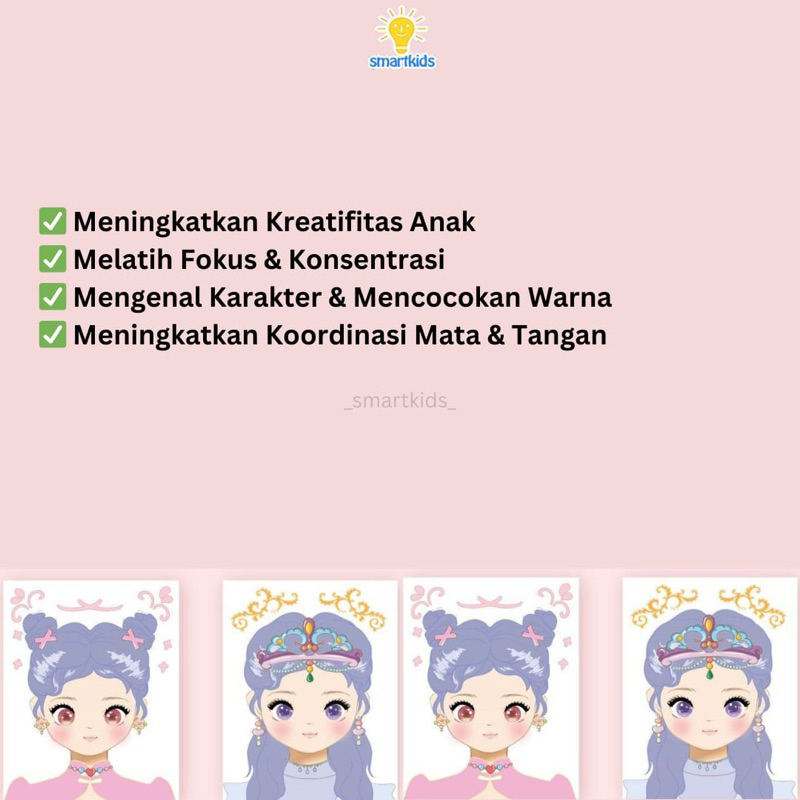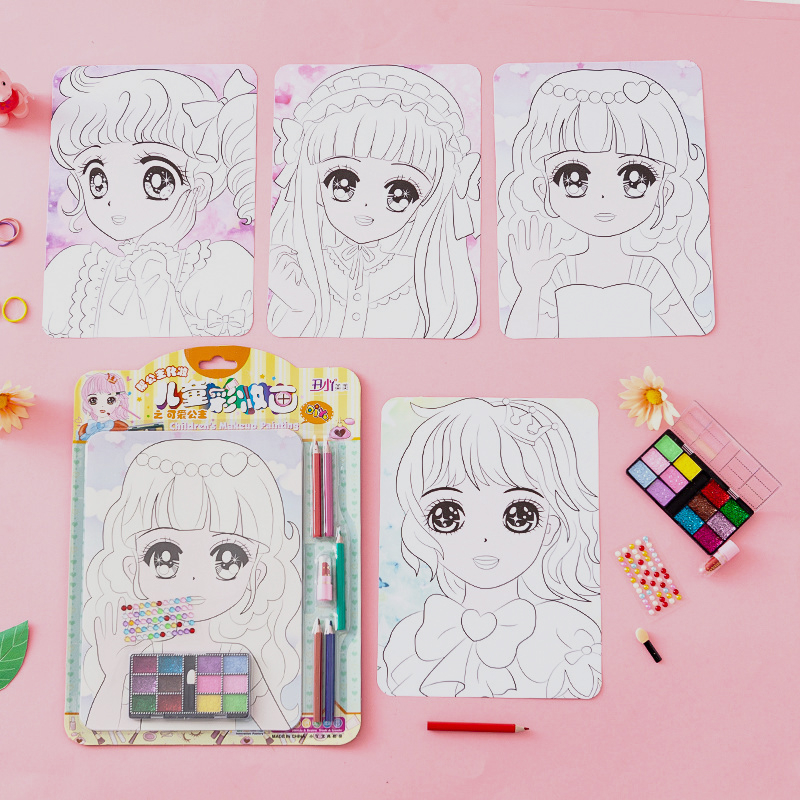 Mainan Diy Make Up Painting Princess Anak Perempuan/ Menggambar Merias Dandan Wajah Menempel Stiker Manik / Kreatifitas