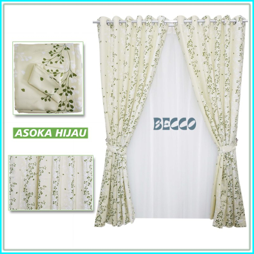Gorden Blazer Asoka Hijau Gorden Jendela Gorden Pintu Gorden Smokring 10ring Tinggi 200cm Surawung