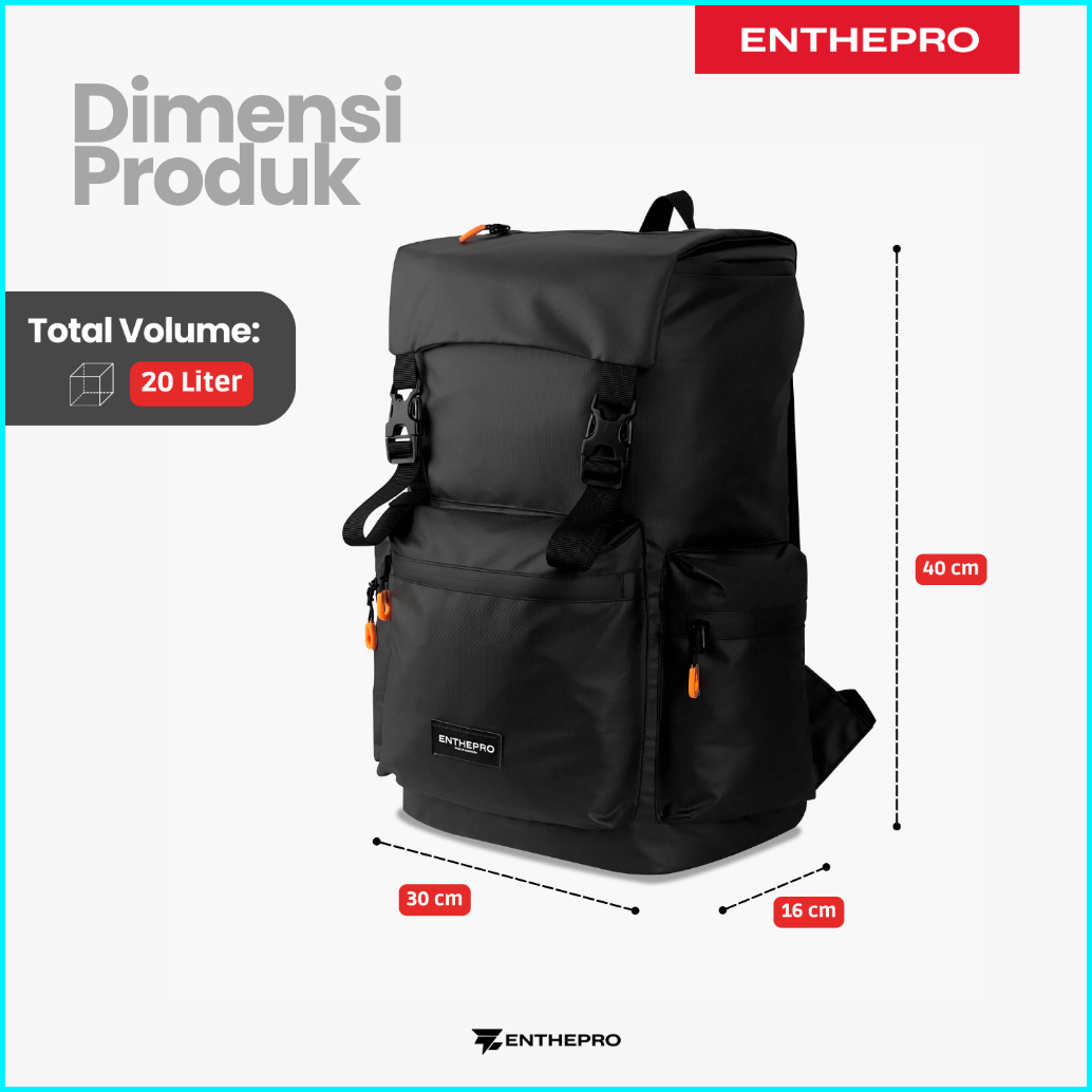Enthepro - Tas Ransel Pria Waterproof Anti Air Tas Sekolah Kuliah Kerja Backpack Anti Air - Dirga
