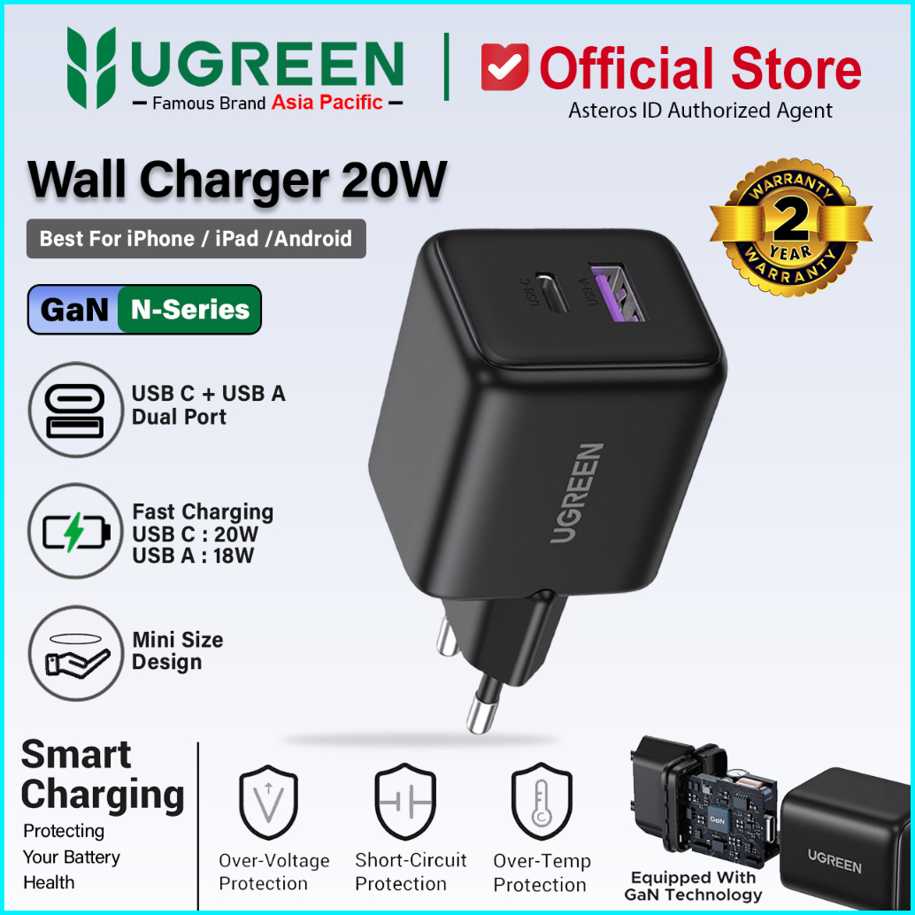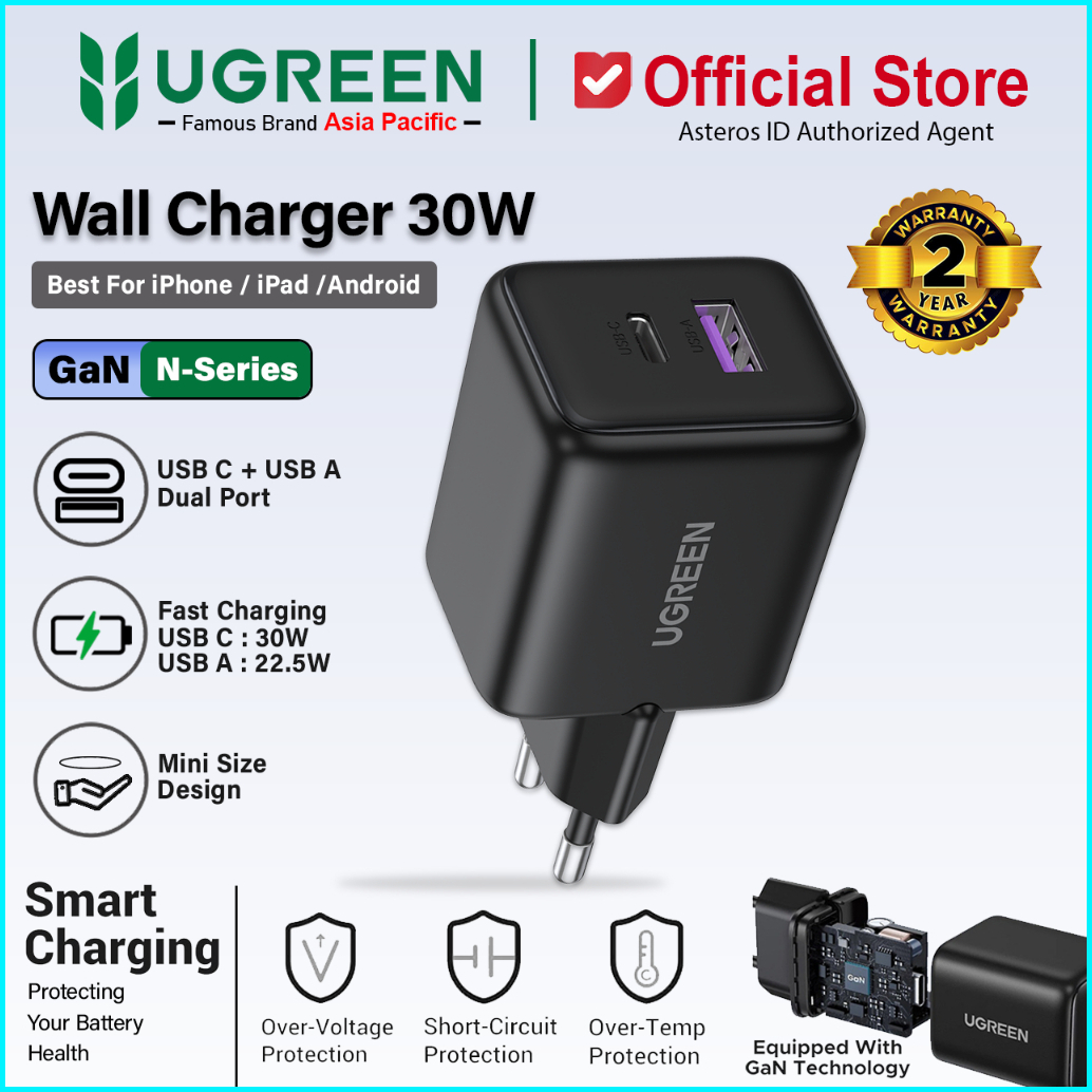 Ugreen Kepala Charger Dual Port Usb A Usb Type C Fast Charging 20w 30w 45w