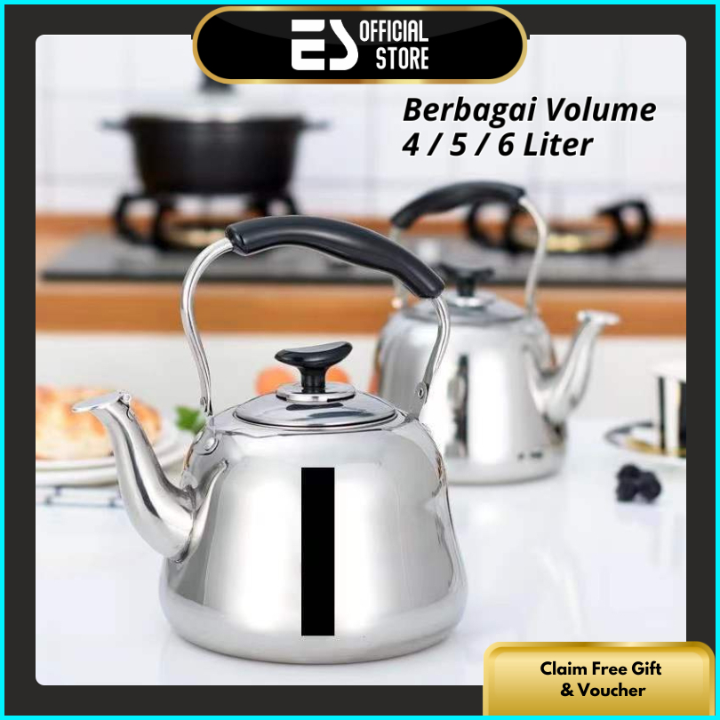 Es Teko Stainless 4 5 6 7 Liter Ceret Bunyi Siul Anti Karat Ceret Bunyi Untuk Masak Air Whistling Kettle Stainless Steel