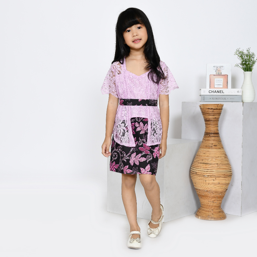 Setelan Kebaya Anak Brukat Batik Modern CHACA KID / Kebaya Anak Kutu Baru Pesta Kondangan