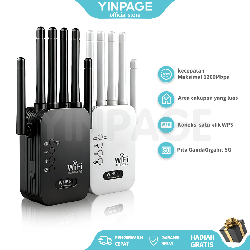 Wireless Router Repeater Jaringan WiFi 1200Mbps 2 Band 2.4G+5GHz Penguat Sinyal Internet Tinggi 6 Antena Extender Wirele
