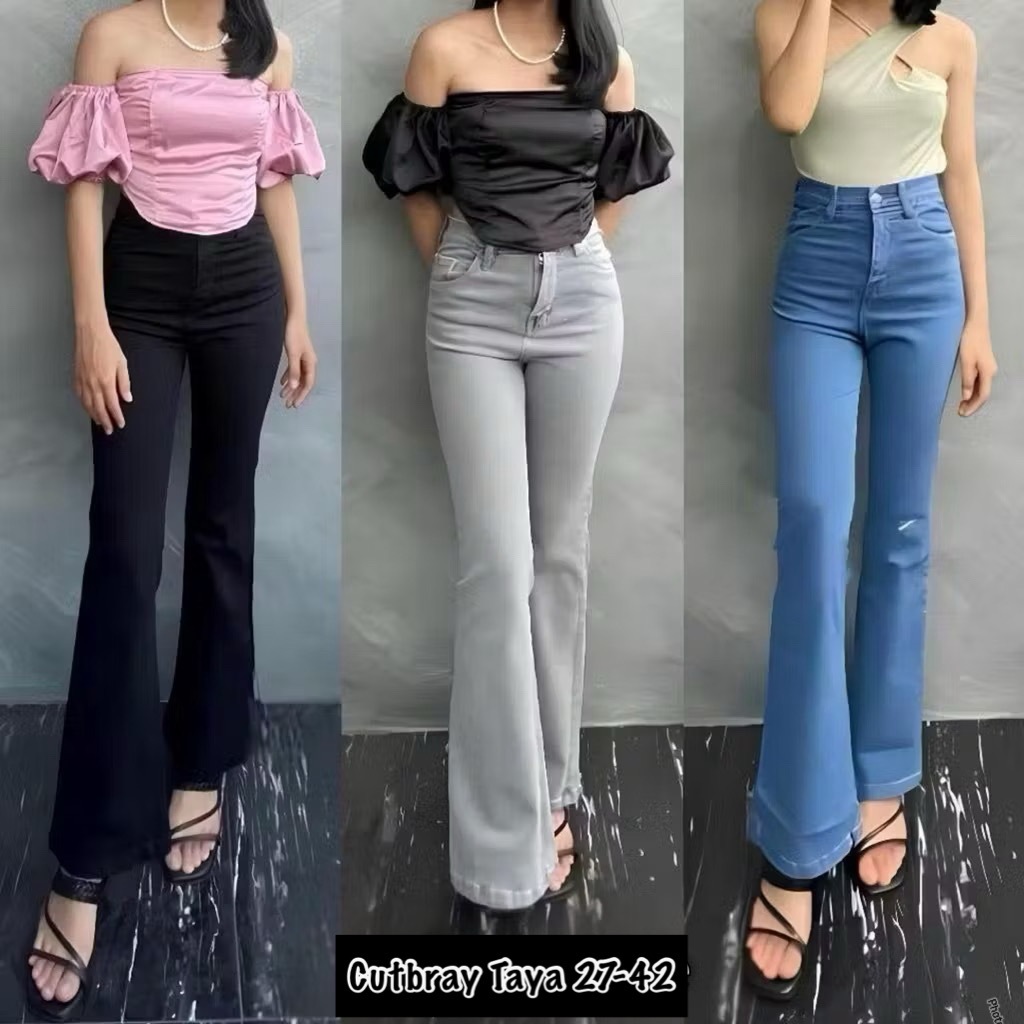 CELANA HIGHWAIST CUTBRAY WANITA STRETCH KOREAN STYLE TEBAL PREMIUM QUALITY SIZE JUMBO 2742 TAYA