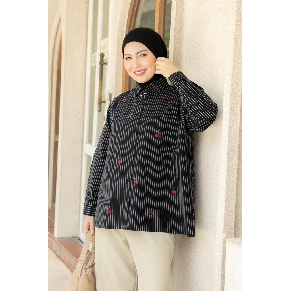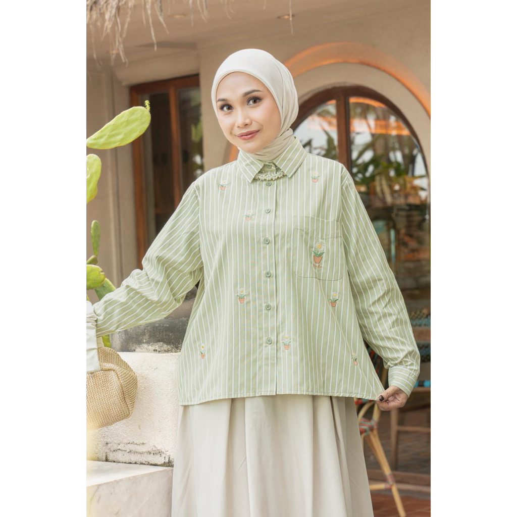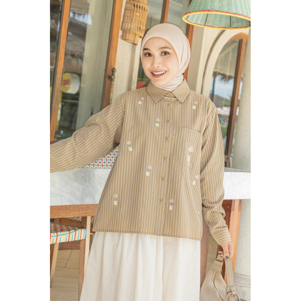 Kienka - Aruna Embroidery Shirt Atasan Kantor Stripe Wanita