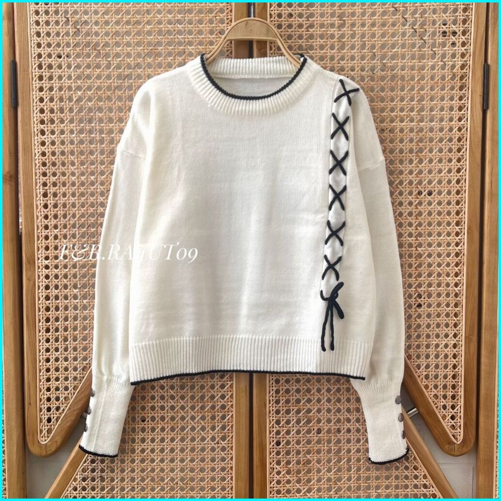 F R Dila Blouse - Atasan Sweater Crop Rajut Wanita Motif Tali Kur Korean Style