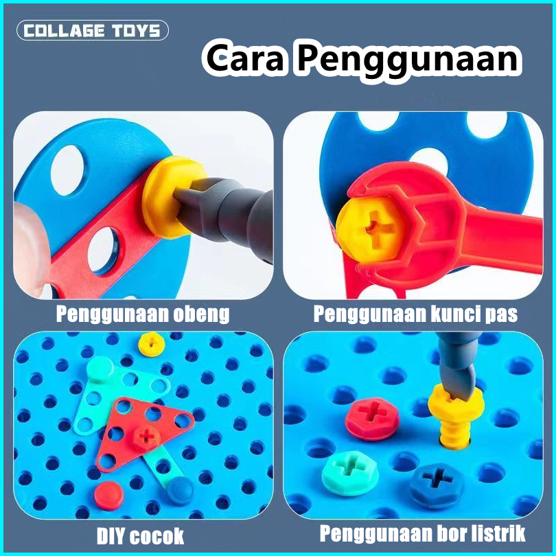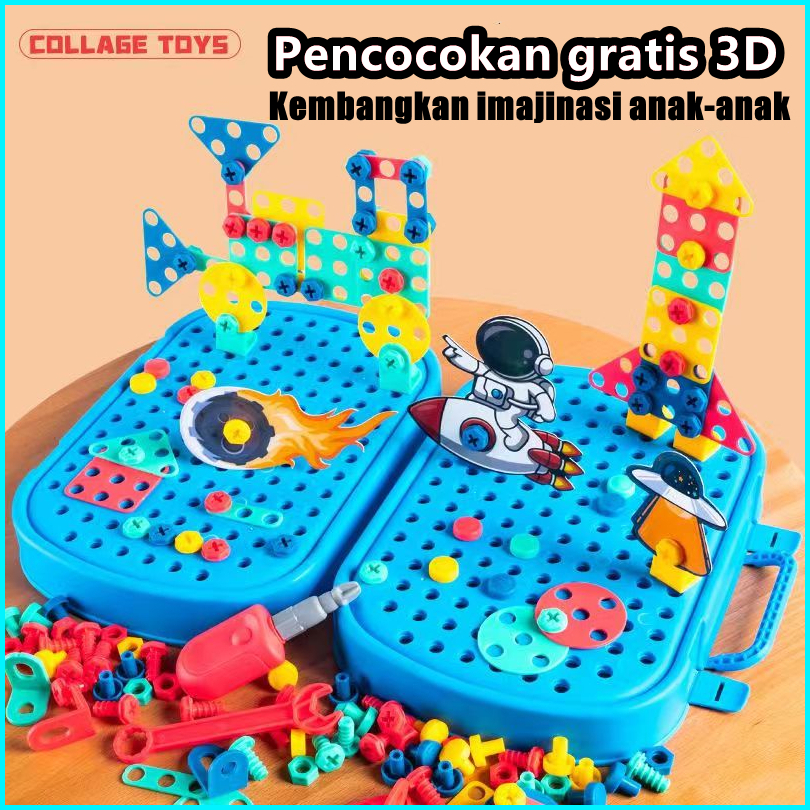 Mainan Anak Tool Box Set 224pcs Diy 3d Kotak Sekrup Bangunan Mainan Edukasi Dengan Bor Listrik