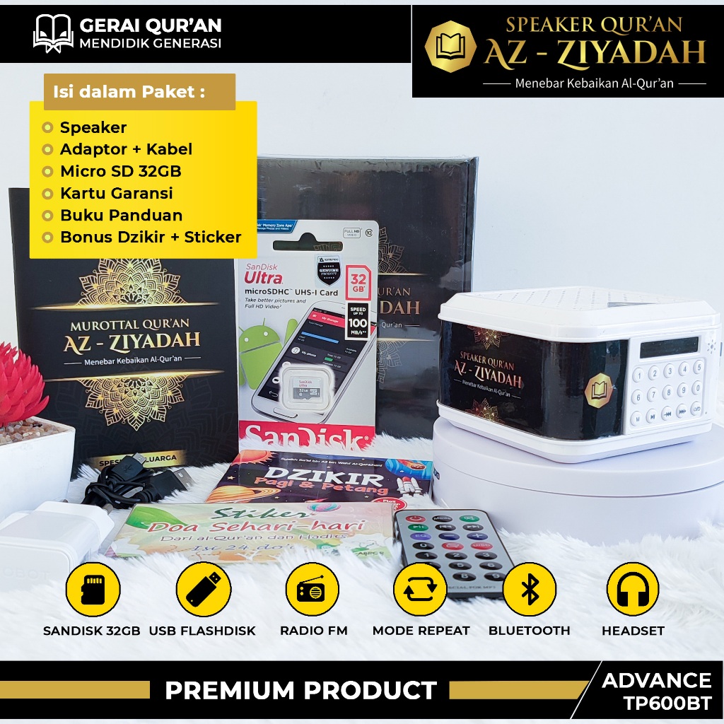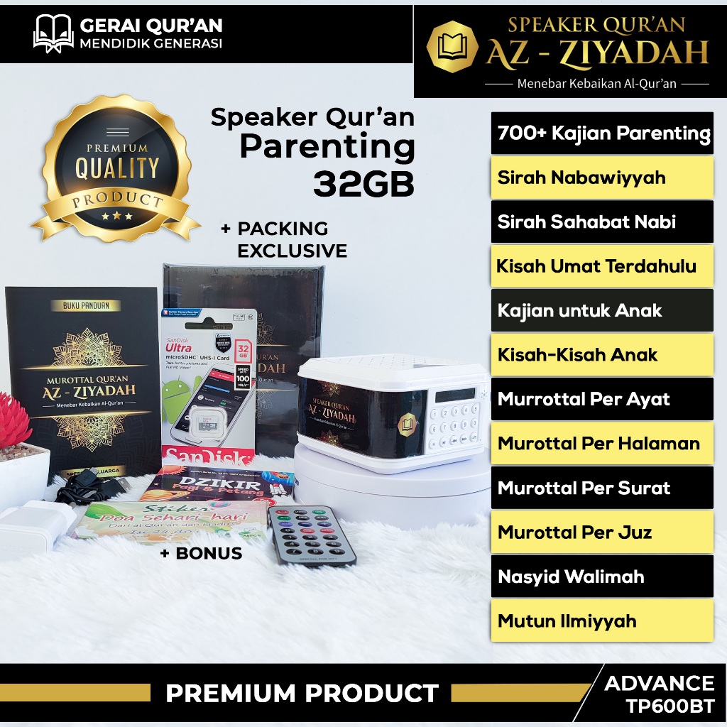 Speaker Murottal Quran Az-Ziyadah Premium Gift Spesial Full Kajian Parenting Advance Tp600Bt Remote