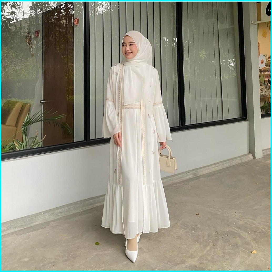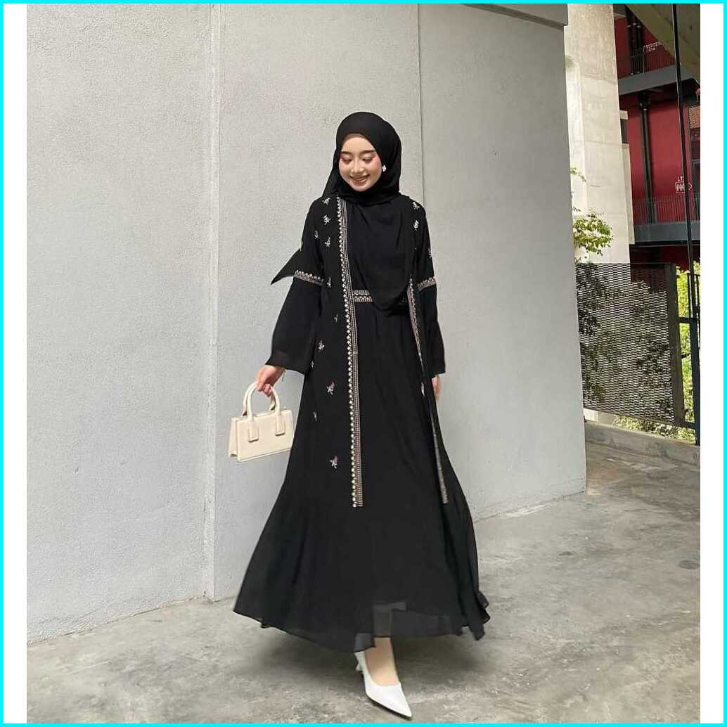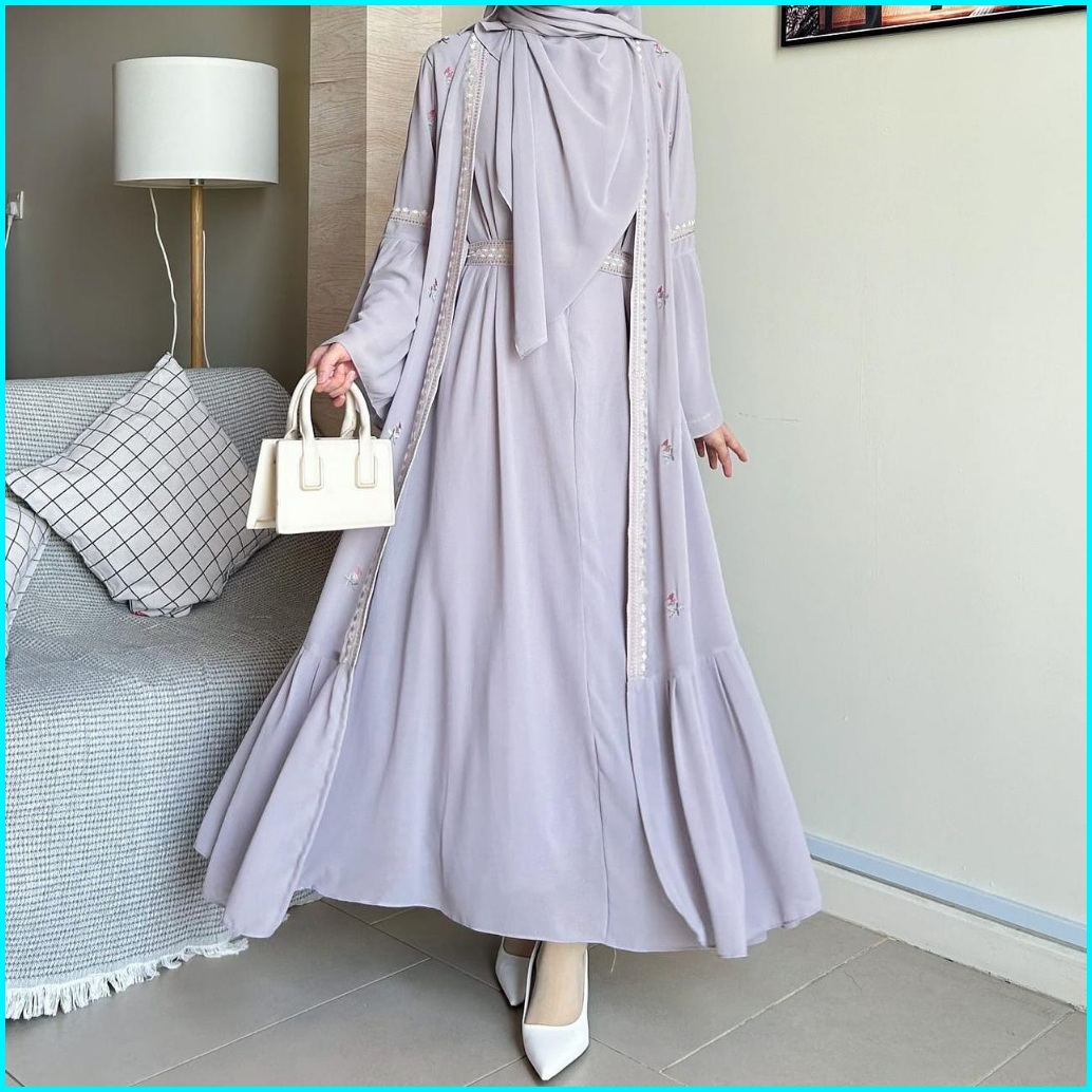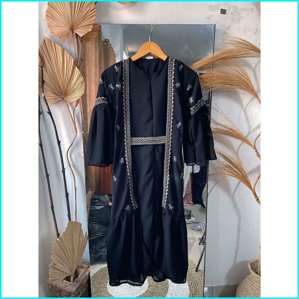 Khaura Fashion Safwa Abaya Maxi Dress Kondangan Wanita Dewasa Model Kekinian Bahan Ceruty Babydoll