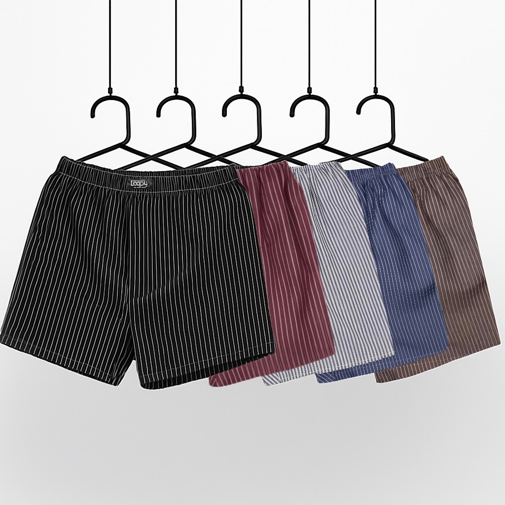Paket 6 Pcs Celana Boxer Salur Pria Wanita Celana Pendek