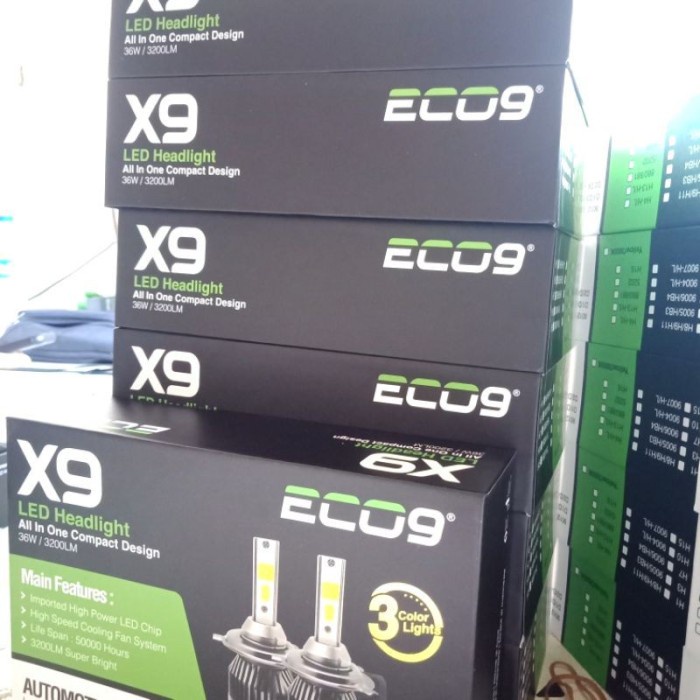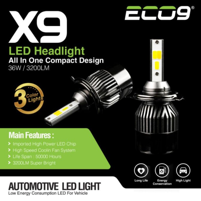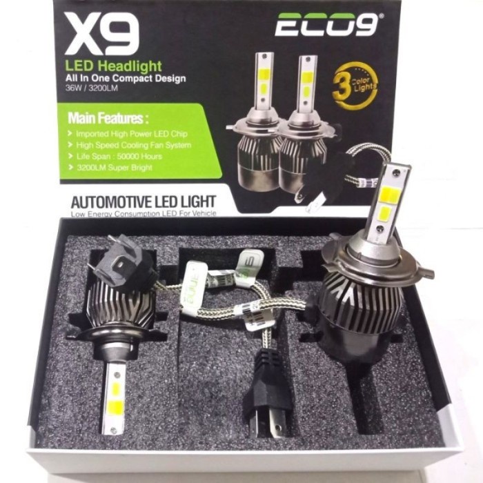 Sepasang/2 Pcs Lampu LED Depan Utama Mobil 3 Warna Headlamp Headlight H4 HiLo Eco9 X9 Luminos X7 Putih