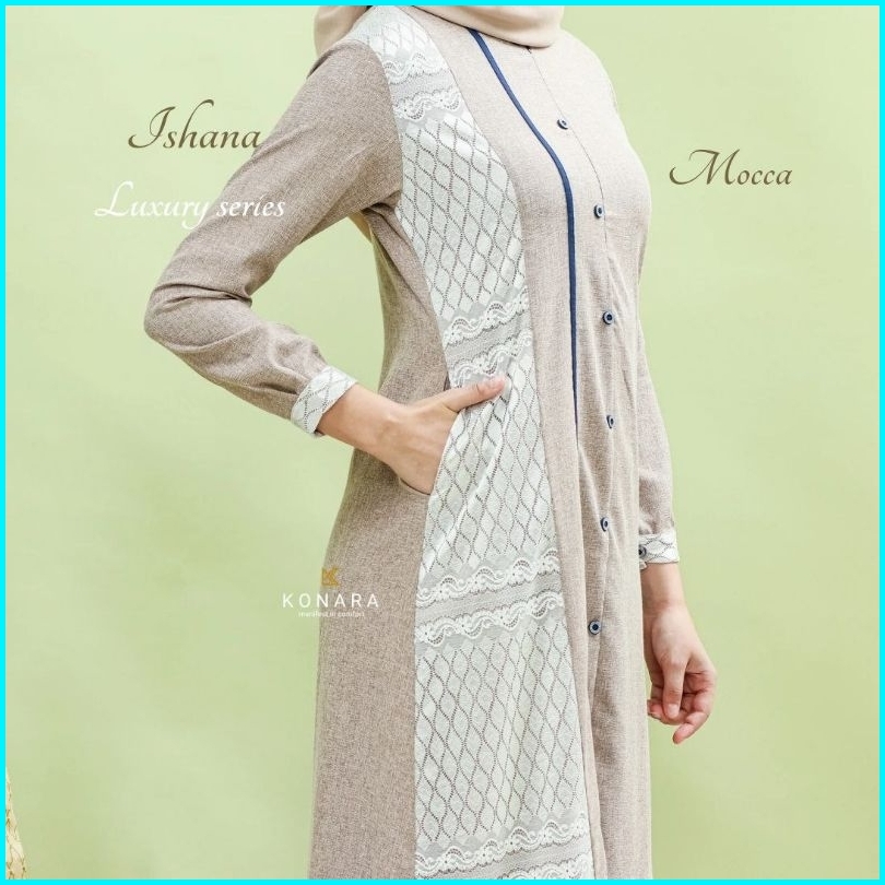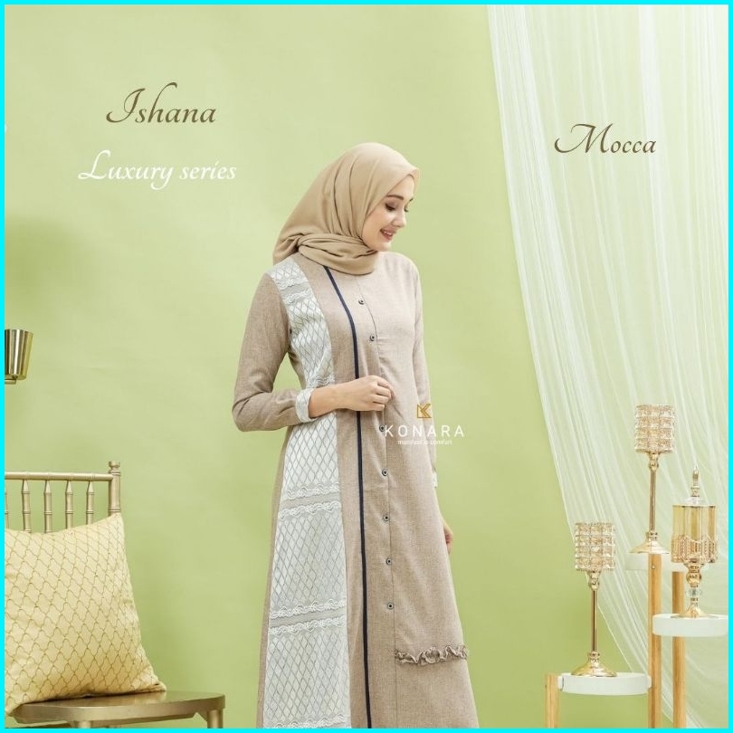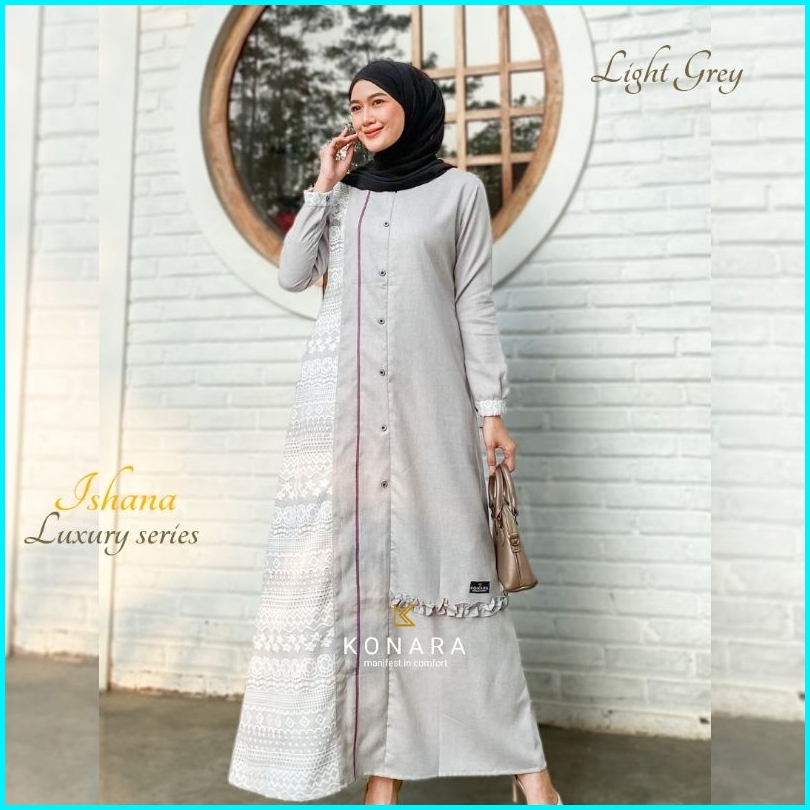 Baju Gamis Muslim Wanita Modern Ishana Luxury Series Katun Madinah Premium Busui Terbaru Original By Konara