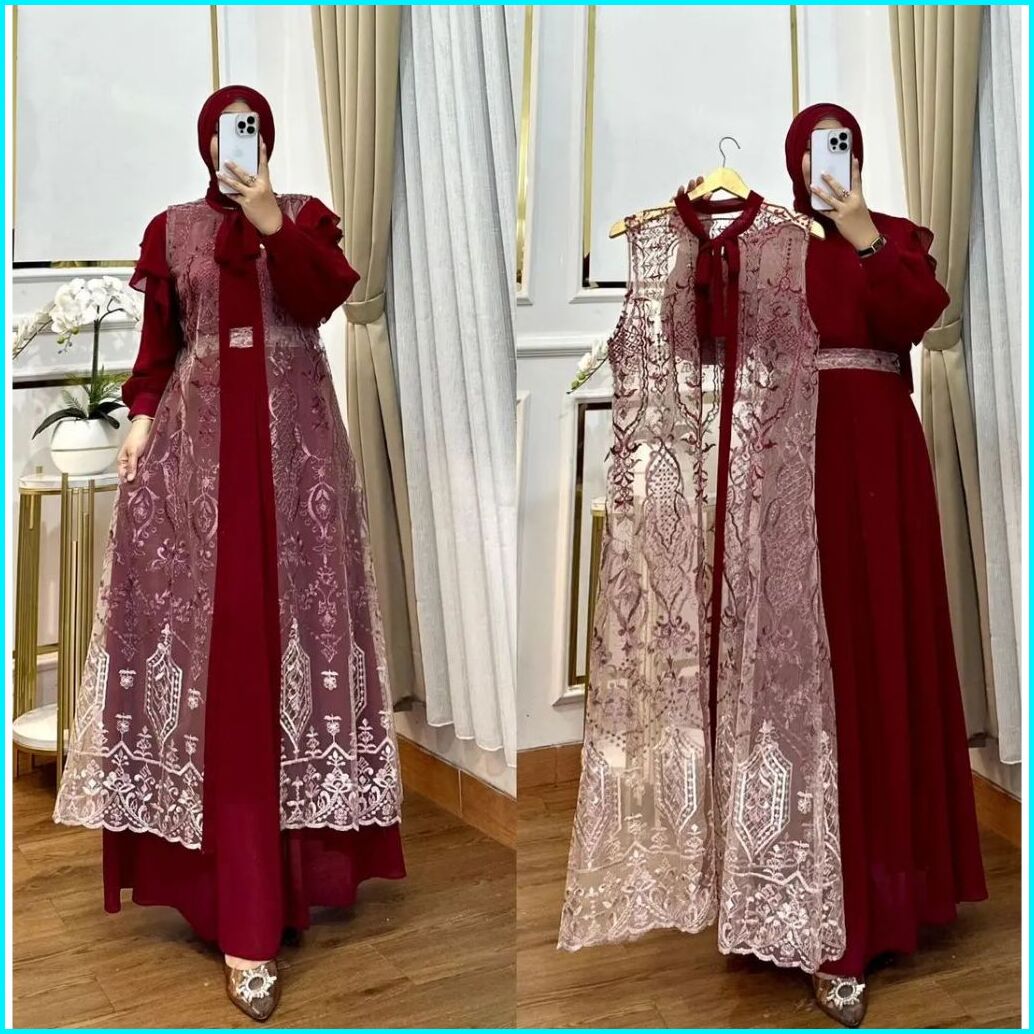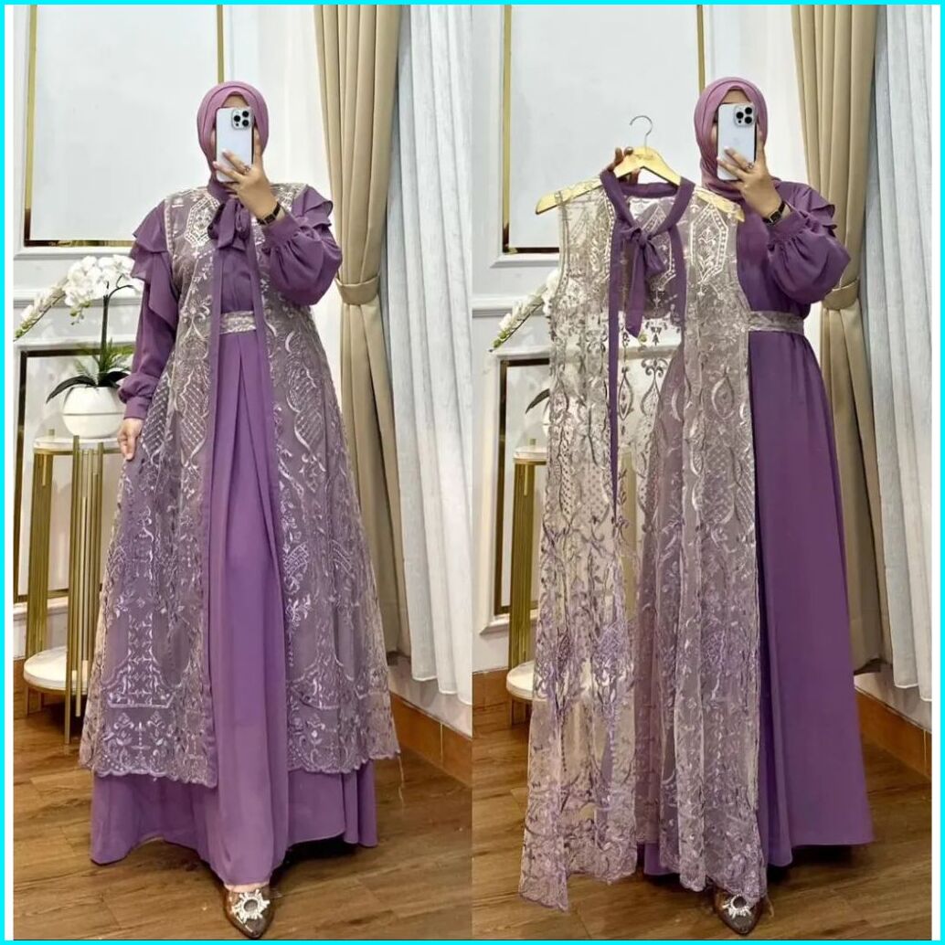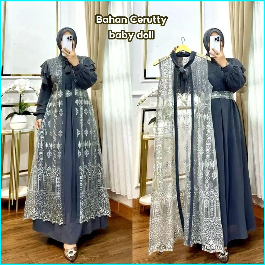 Kaila Dress Set Outer Terlaris 2024 Gamis Kondangan Wanita Kekinian Gamis Pesta Mewah Elegan Warna Hitam Dress Ceruty Ba