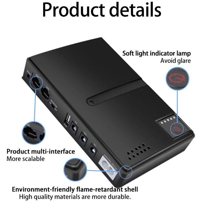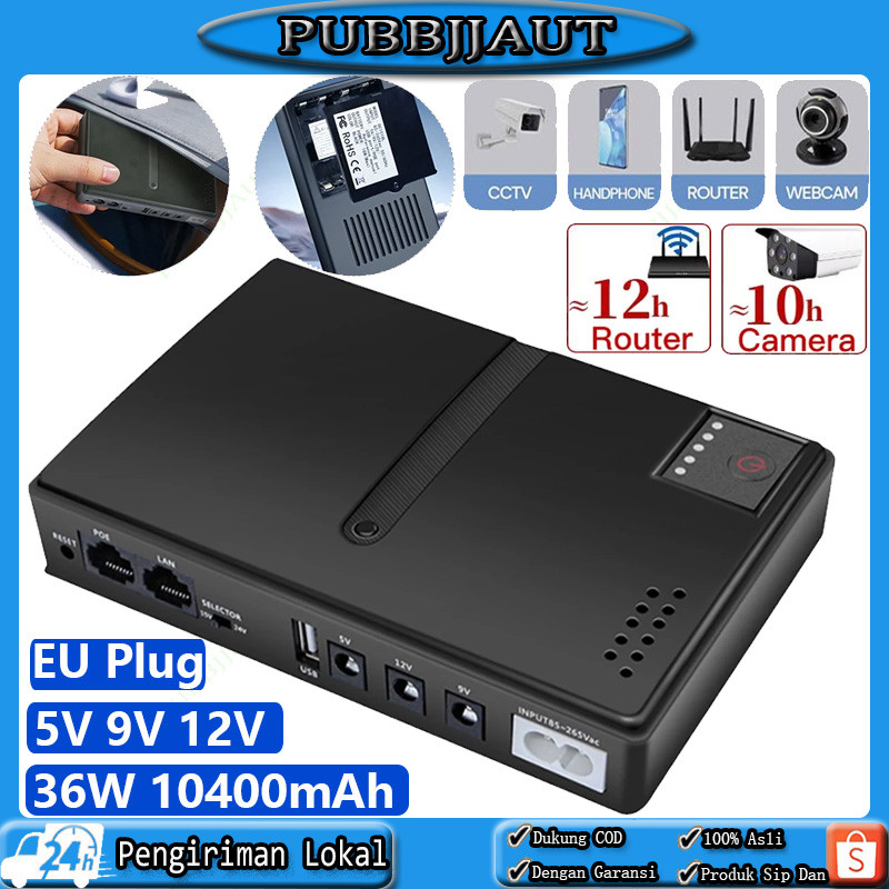 UPS Backup wer Adapter 36W 10400mAh Large Capty Mini rtable UPS Rer Uninterruptible wer Supply 5V 9V 12V UPS Rer Optical Cat Built-in Adapter Backup wer Supply Eu