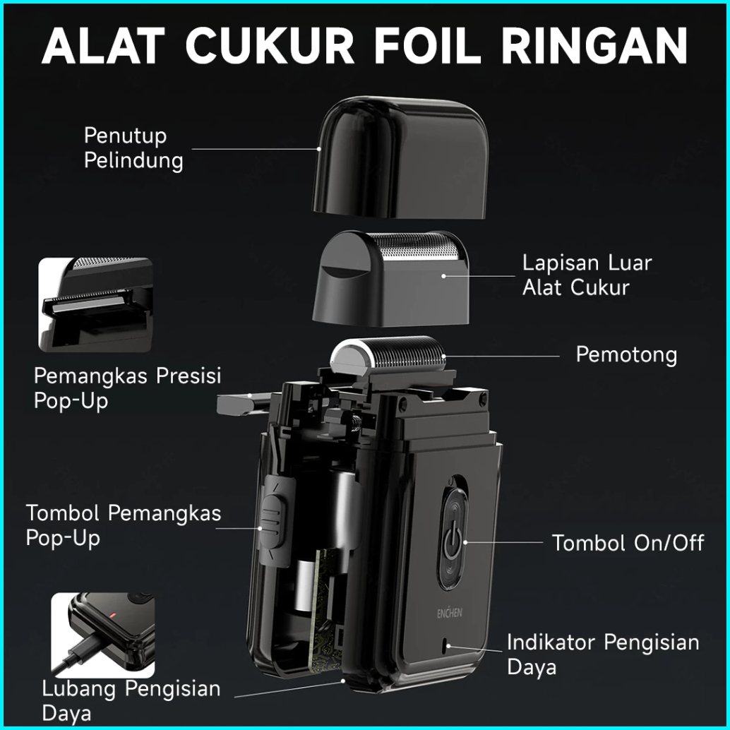 Enchen Ms003 Mini Shaver Portable Alat Cukur Kumis Dan Jenggot Elektrik Alat Cukur Portable Slim